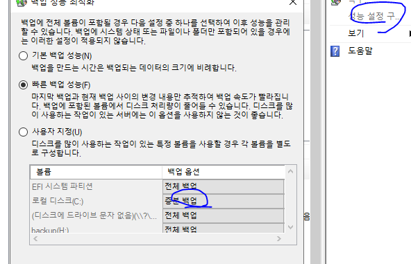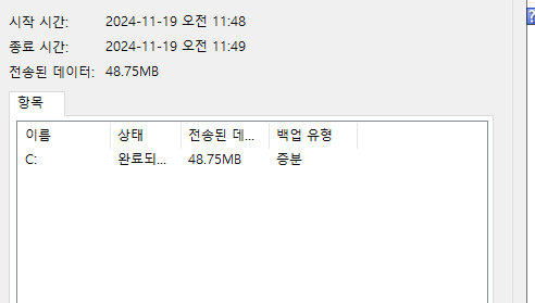 증분 백업 : 기존 백업파일에서 추가 변경된 부분만