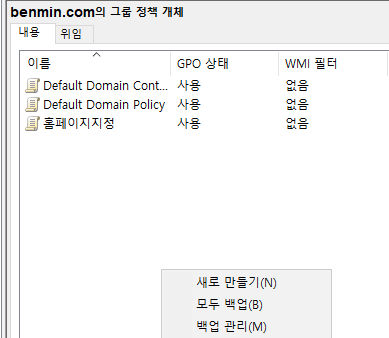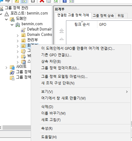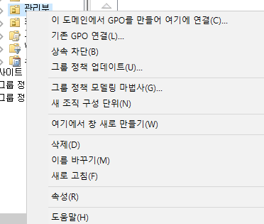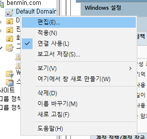 디폴트 도메인폴리시 우클릭하고 그룹정책관리 편집기 실행