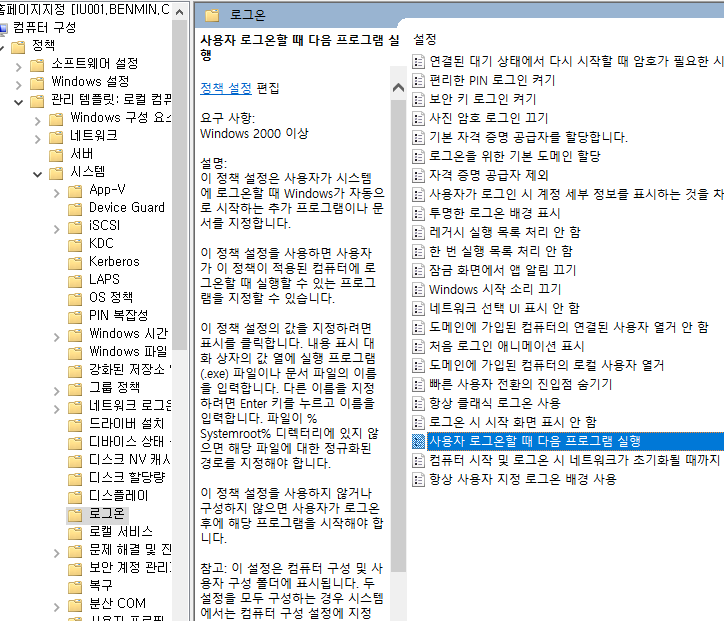 이렇게 해서 Win10(클라이언트)에 들어가면 bat파일이 적용이 되지않는다