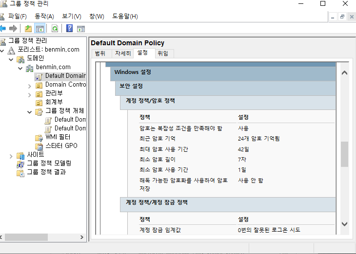 도메인 - 디폴트 도메인 폴리시 클릭 -설정탭