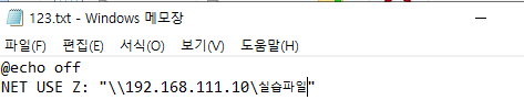 \\IU001\실습파일$\mount.bat # bat파일 경로