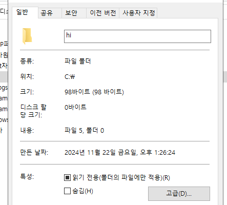 이유는 이름을 변경하면 공유 권한 설정과 보안 탭의 사용자의 설정이 초기화/ 변경 되어서 공유 권한 설정 다시하고