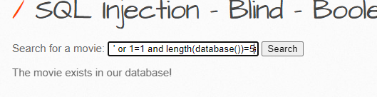 SELECT * FROM movies WHERE title = ' ' or 1=1 and length(database())=1# '