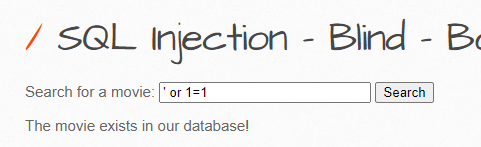 ' or 1=1 을 입력하니(무조건 참이니) 영화가 존재한다고 출력