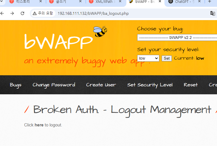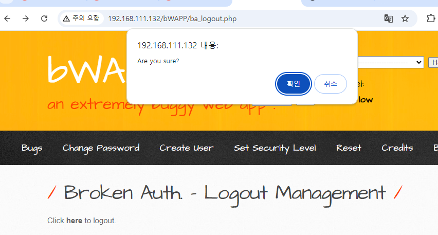확인을 누르면 로그아웃이 된다.
