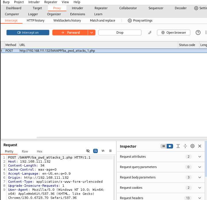 우선 로그인 페이지에서 로그인 요청을 보내는 헤더를 가로챈다.
