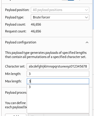 max length 글자 조합 최대 글자수 또한 마찬가지로 실제 비밀번호의 글자수인 3으로 맞춰준다(오래걸리니까)